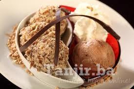 Trilogijačokolada 50%, mliječna čokolada, bijela čokolada, šlag, mlijeko, želatin, šećer, jaja, sladoled5,00 KM