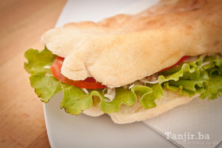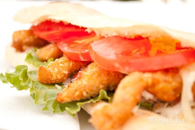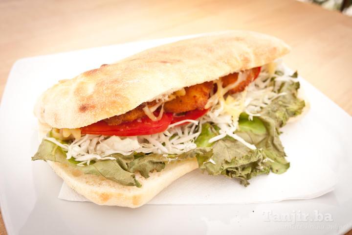 Sendvič Piletina u susamuDomaće pecivo, pohovani pileći rezanci u susamu, svježe salate, french sos, domaće pecivo3,50 KM