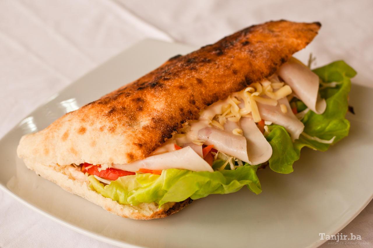 Sendvič PestoDomaće pecivo, pileći rezanci sa roštilja, pesto genovese, domaće pecivo, sir, french sos, svježe salate3,50 KM