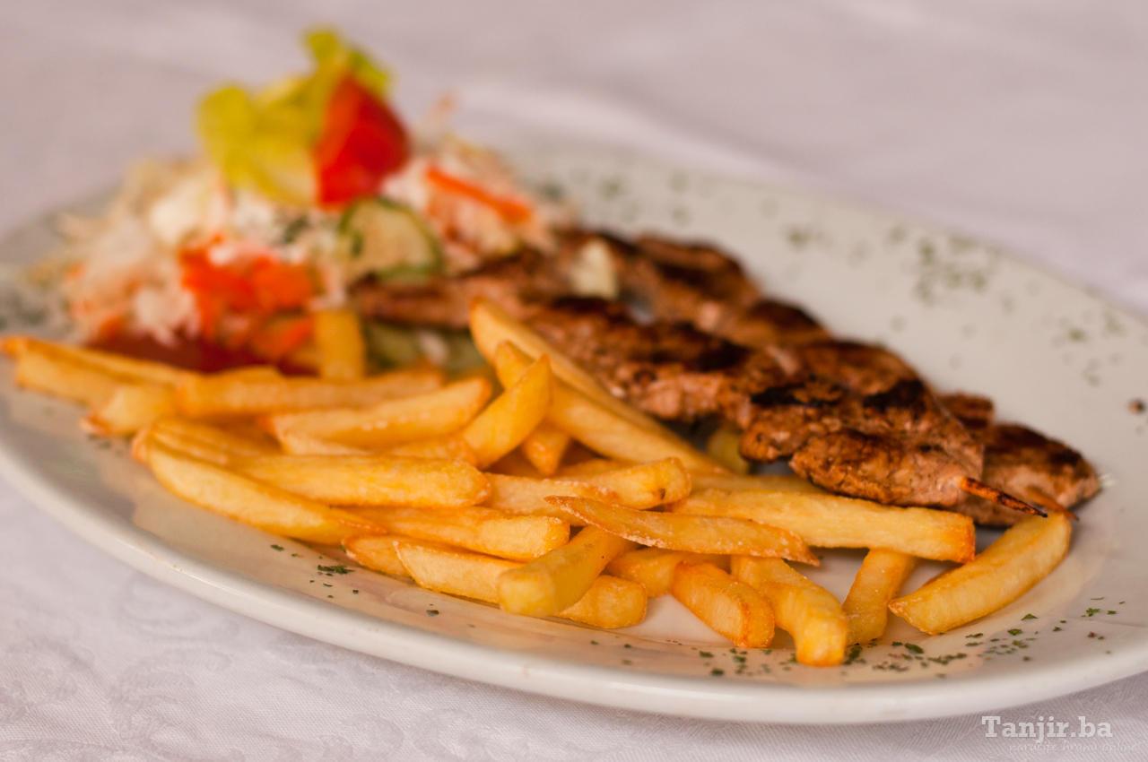 Pileći ražnjići s povrćemPomfrit, krompir u palenti sa susamom, grilovano povrće, šampinjoni sa žara5,00 KM