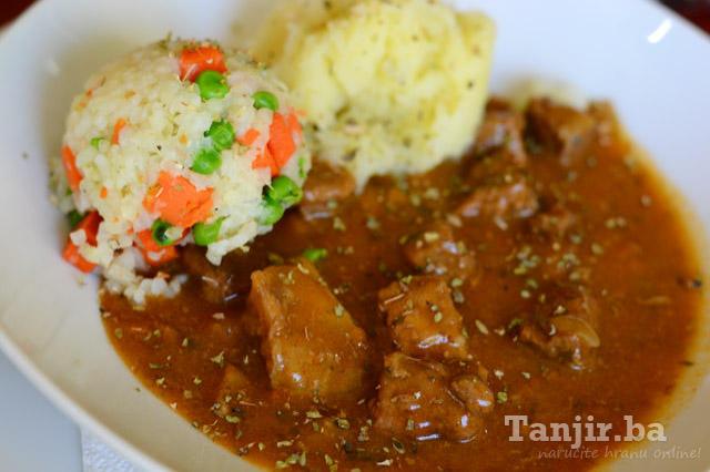 juneće meso, pire/riža/makarone |