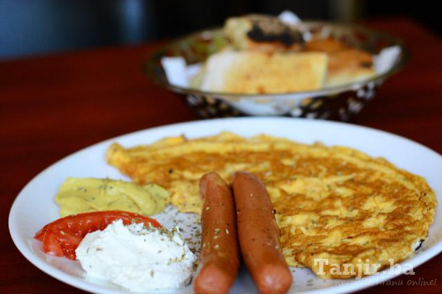 2x goveđe kobasice, 2x jaja, sir i kajmak |