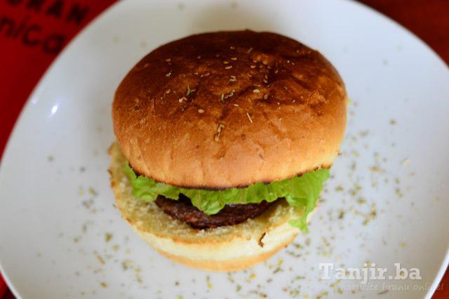 juneće meso 120 g, zemička,salata,pekarski krompir,sos,blagi,ljuti |
