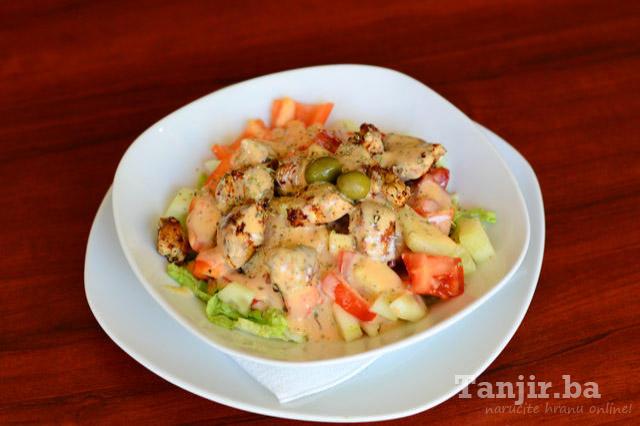 grill piletina, zelena salata, paprika, krastavac, paradajz |
