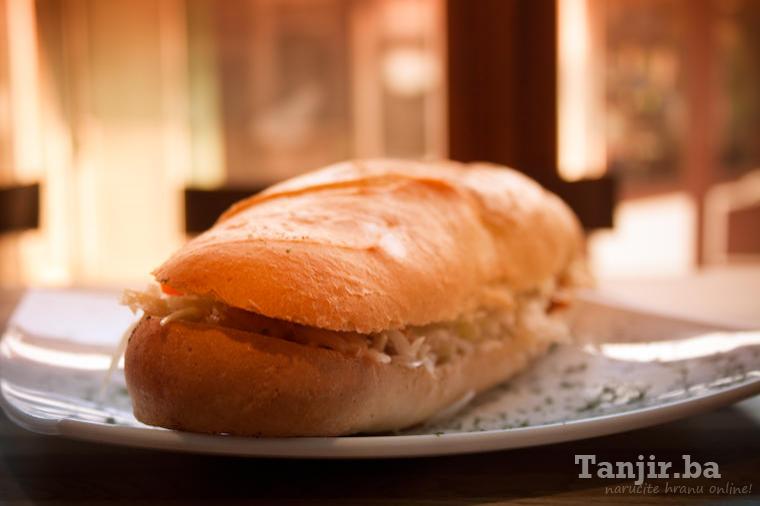Hladni sendvičDimljena pileća prsa, margo, žuti sir, zelena salata, paradajz, kiseli krastavac, somun3,00 KM
