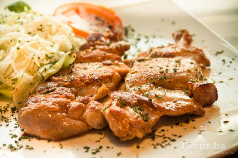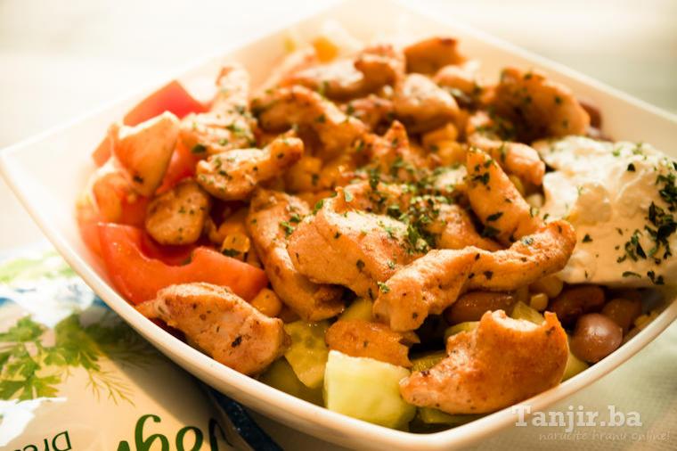 Pileća salataPileći file, zelena salata, kupus, paradajz, krastavac, grah. kukuruz. feta sir. dresing, peršun + pecivo8,00 KM -