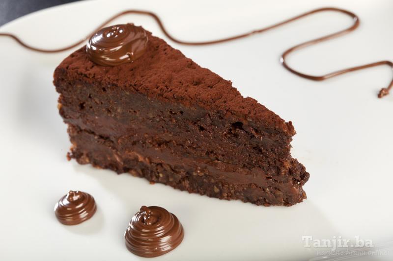 Čokoladna torta sa pralinomjaja, šećer štaub i smeđi, brašno, orasi, lješnjaci, šlag, čokolada 50%, sladoled4,00 KM