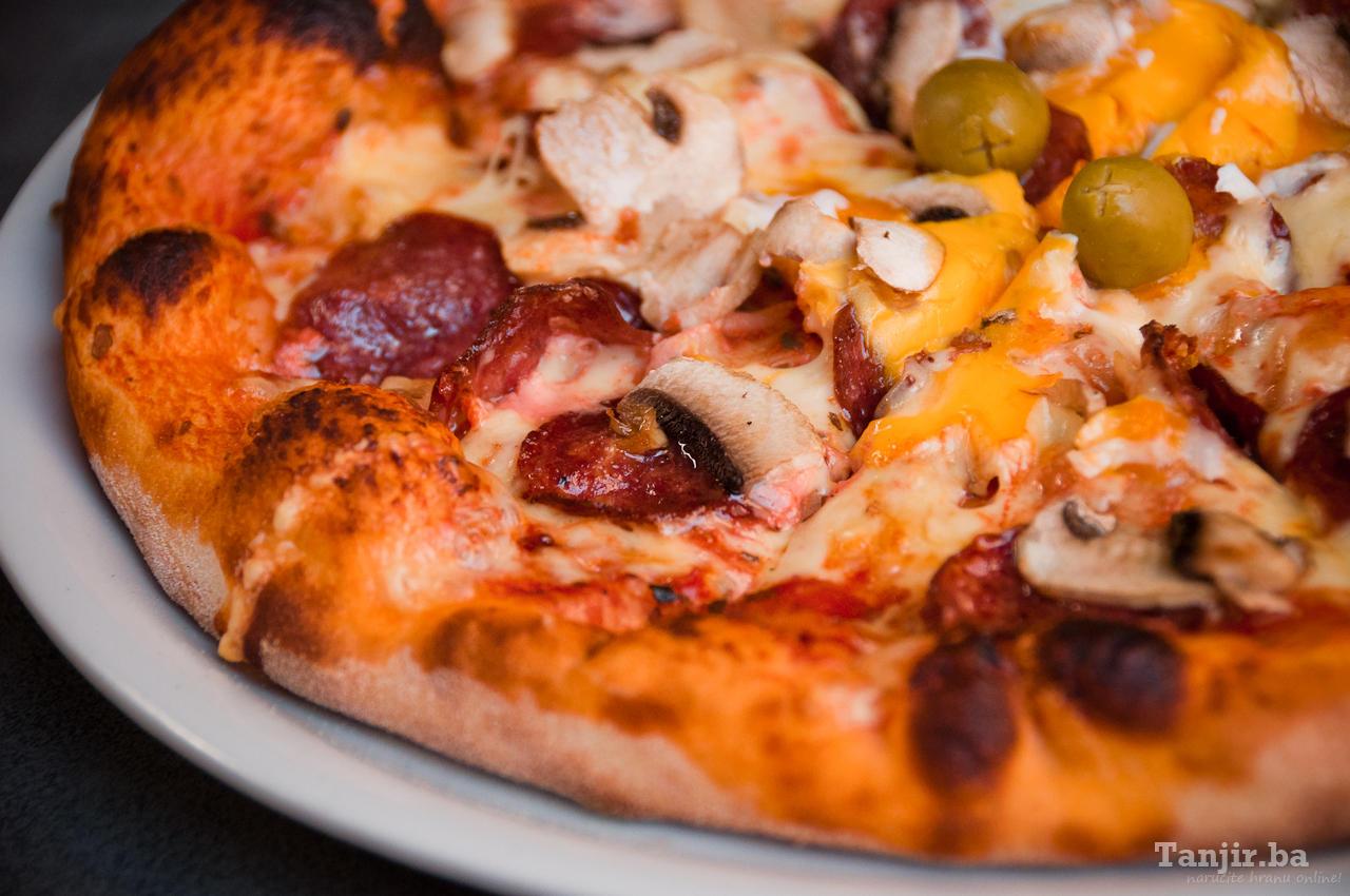 Pizza MeksikanaParadajz sos, sir, kulen, šampinjoni, svježa paprika, fafaroni, grah, kukuruz15,00 KM