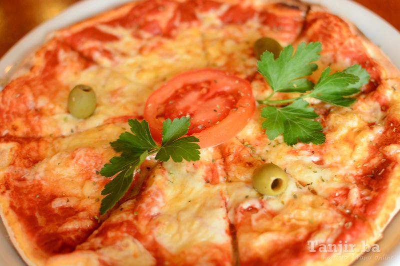 Pizza Quattro formaggivrhnje za kuhanje, sir edamer, gorgonozola, mozzarela, origano, maslina7,00 KM -